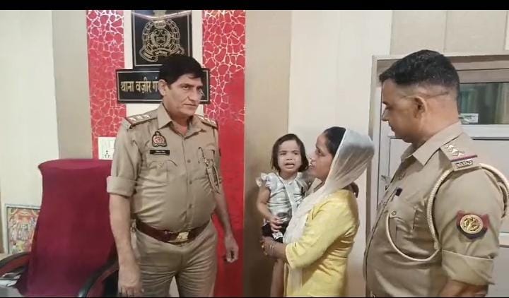 बदायूं-वजीरगंज में सचिन कुमार की पुत्री उम्र 2 वर्ष निवासी आंवला रोड थाना वजीरगंज के अंतगर्त बच्चे के खोने से परिजनों में हड़कंप मच गई। बच्ची की मां रोते हुए थाना वजीरगंज पहुंची।परिजनों द्वारा तत्काल थाना प्रभारी वजीरगंज को सूचित किया गया। थाना प्रभारी जितेंद्र कुमार सिंह ने तुरंत एक्शन लेते हुए,SI राजाराम के द्वारा SI राजाराम ने महज आधे घंटे के अंदर खुई हुई बच्ची को सकुशल बरामद किया। जो कि बच्ची की मां खील,परमल खरीदते समय उनकी बच्ची किसी कारण गुम हो गई थी। पुलिस ने अपने अथक प्रयास से बच्चे को बरामद कर घर वालों को सुपुर्द किया। बच्ची के सकुशल घर लौटने पर परिजनों ने राहत की सांस ली और पुलिस टीम का आभार व्यक्त किया। क्षेत्रीय जनता ने भी वजीरगंज पुलिस की इस त्वरित और प्रभावी कार्रवाई की सराहना की है।