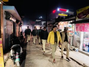 जिससे कि गुंडों में पुलिस की दहशत कायम रहे।और शहर में कानून व्यवस्था कायम रहे। आज भी एसएचओ धनंजय सिंह और उनकी पूरी टीम ने बाज़ार बिल्सनगंज पठानटोला काजी मोहल्ला से होते हुए मोहल्ला चौधरी चाहशीरी ओर डार्लिंग रोड होते हुए नवादा तक फ्लैग मार्च किया। इस दौरान इंस्पेक्टर क्राइम हरवीर सिंह एसआई विष्णु दत्ता समेत थाने का समस्त स्टाफ़ मौजूद रहा।
